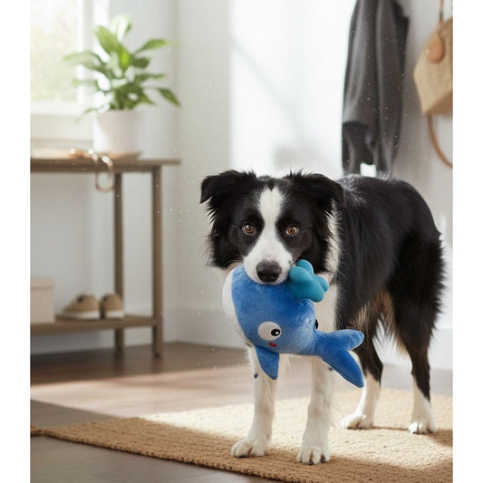 Ballena de peluche con chorro de goma - Juguete 2 en 1