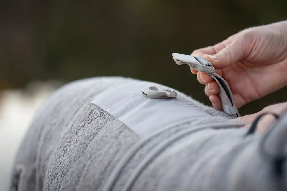 Tanto si tu perro está listo para subirse al coche como para sacudirse el agua dentro de casa, simplemente desliza el abrigo sobre su cabeza, envuelve la pieza del pecho y asegura fácilmente con una mano la duradera hebilla magnética.