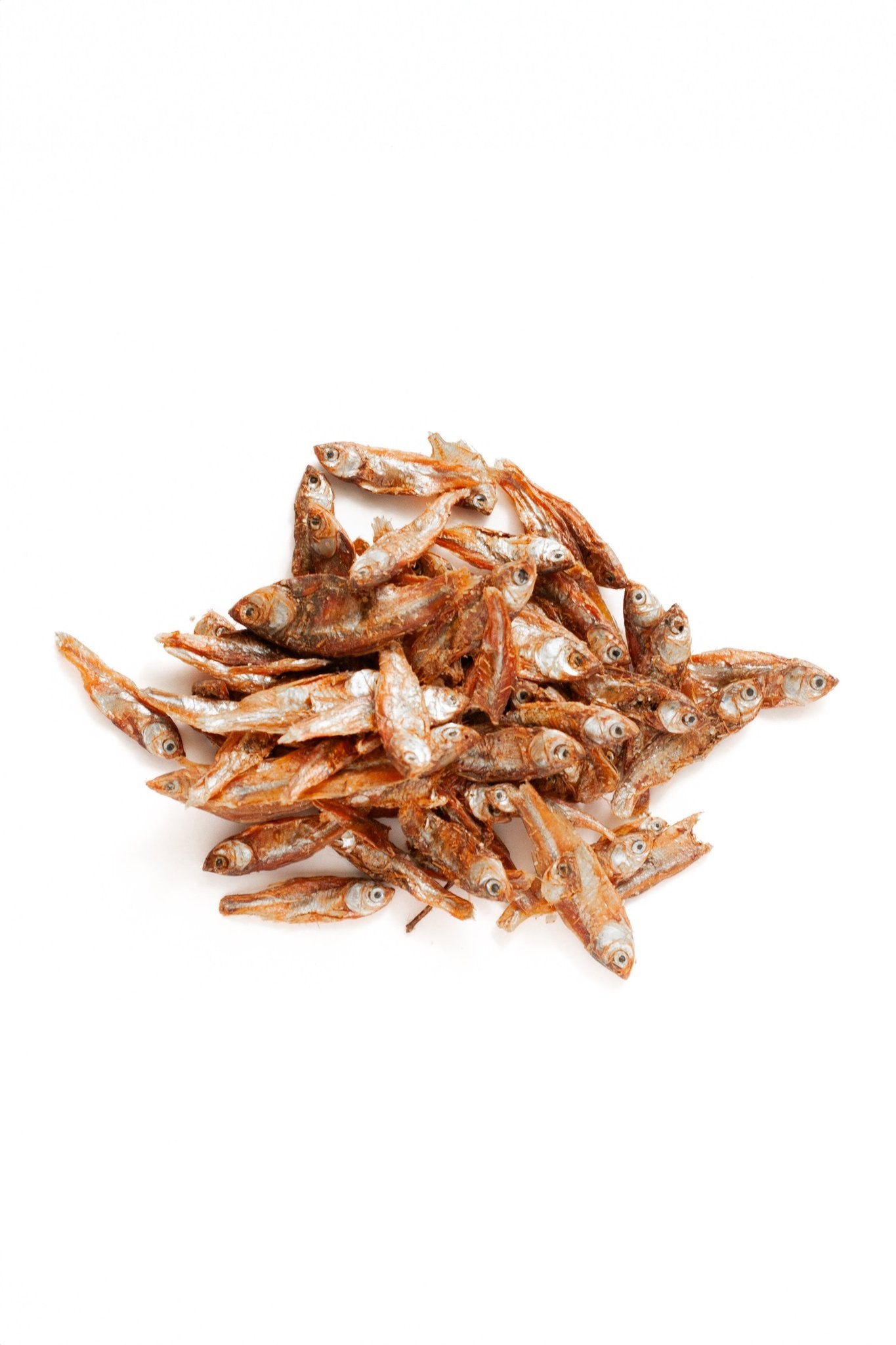Contenido: Snacks de salmón, piel de salmón enrollada, cubitos de piel de bacalao, chocos deshidratados, tiras 100% pescado, piel de palmeta, lirios deshidratados, delicias del báltico, pellejitos de atún, cabezas de caballa, trenzas de piel de bacalao, deliciás del atlántico y filetes de melva