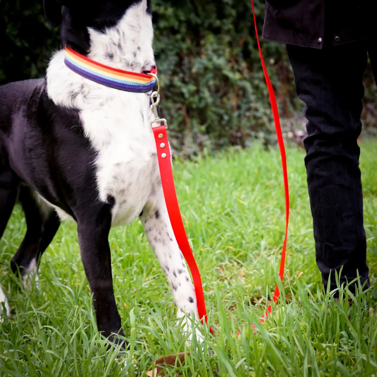 El ancho de la correa puede variar en función de la longitud elegida respecto a las fotos. Los colores lisos son PVC (parecido al biothane), si quieres alguno de ellos, escríbenos.