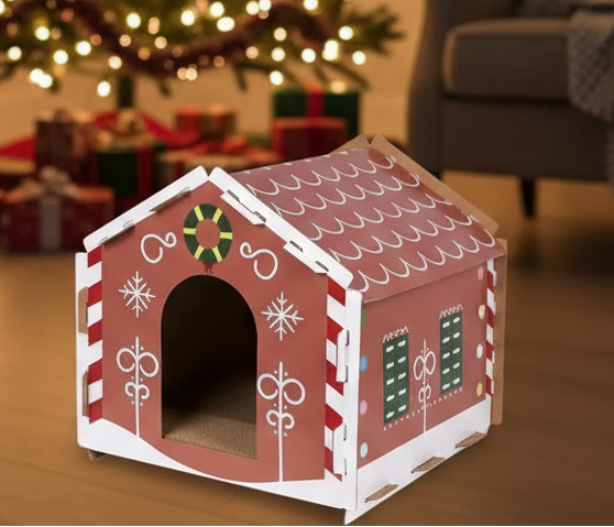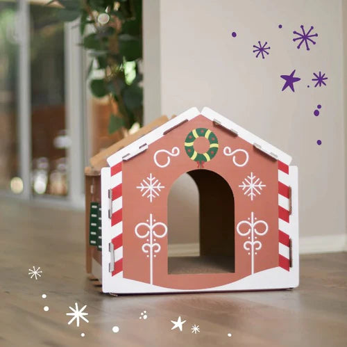 El Rascador Casita de jengibre permite a tu gato mantener sus uñas afiladas de manera segura mientras disfruta de un espacio acogedor para descansar o jugar.