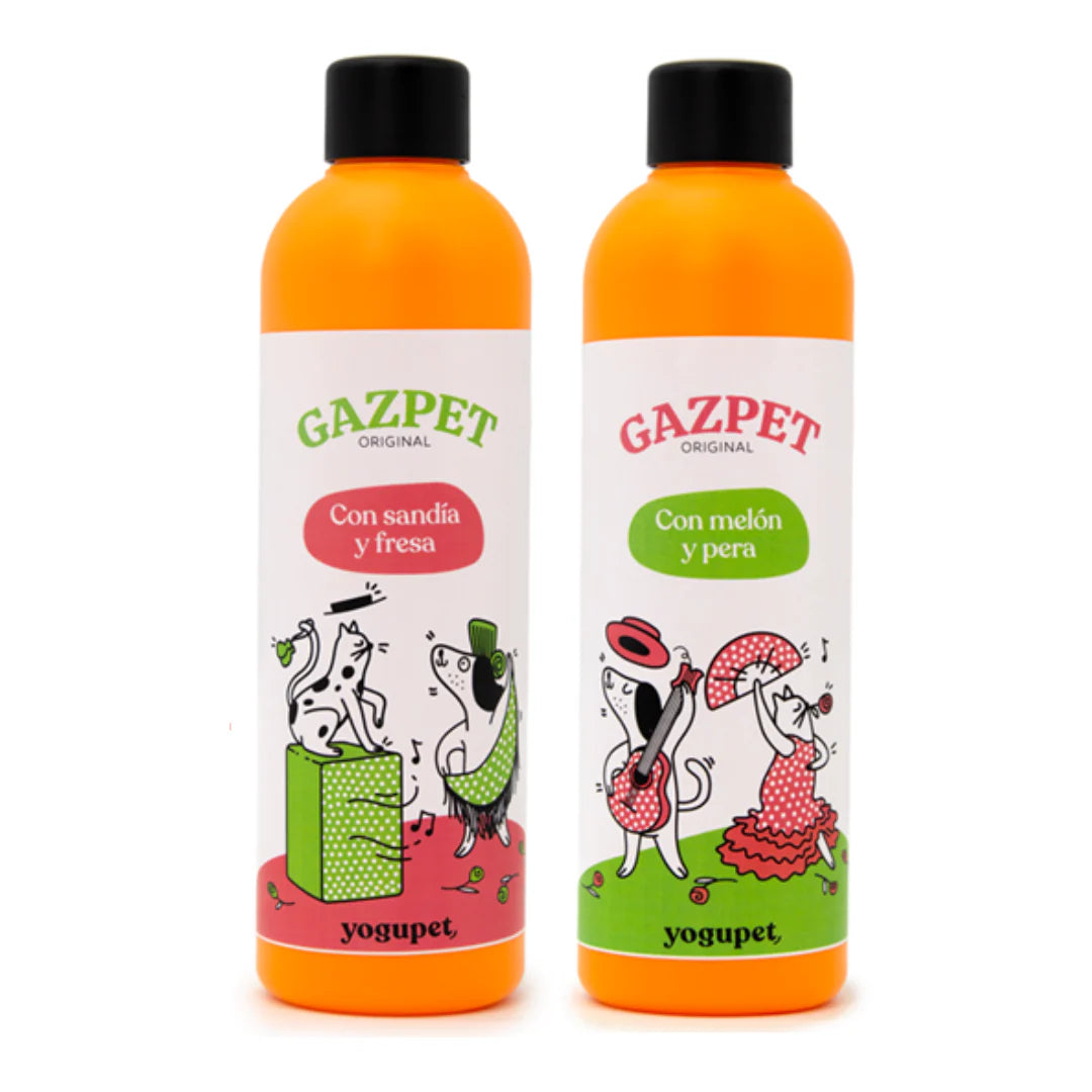 Yogupet Gazpet Melón y pera, alimento complementario para perros y gatos. Refrescante yogur líquido pasteurizado para perros y gatos, elaborado con sandía y fresa. Perfecto para mantener a perros y gatos hidratados. Gazpacho para perros y gatos, aperitivo perfecto para pasar el verano con tu peludo.