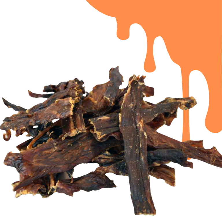 É um snack delicioso e saudável. Carne seca de búfalo. Petisco natural para cães. 75% de proteína. Textura crocante . Promove a mastigação e liberta endorfinas. Muito aromático. Muito nutritivo.