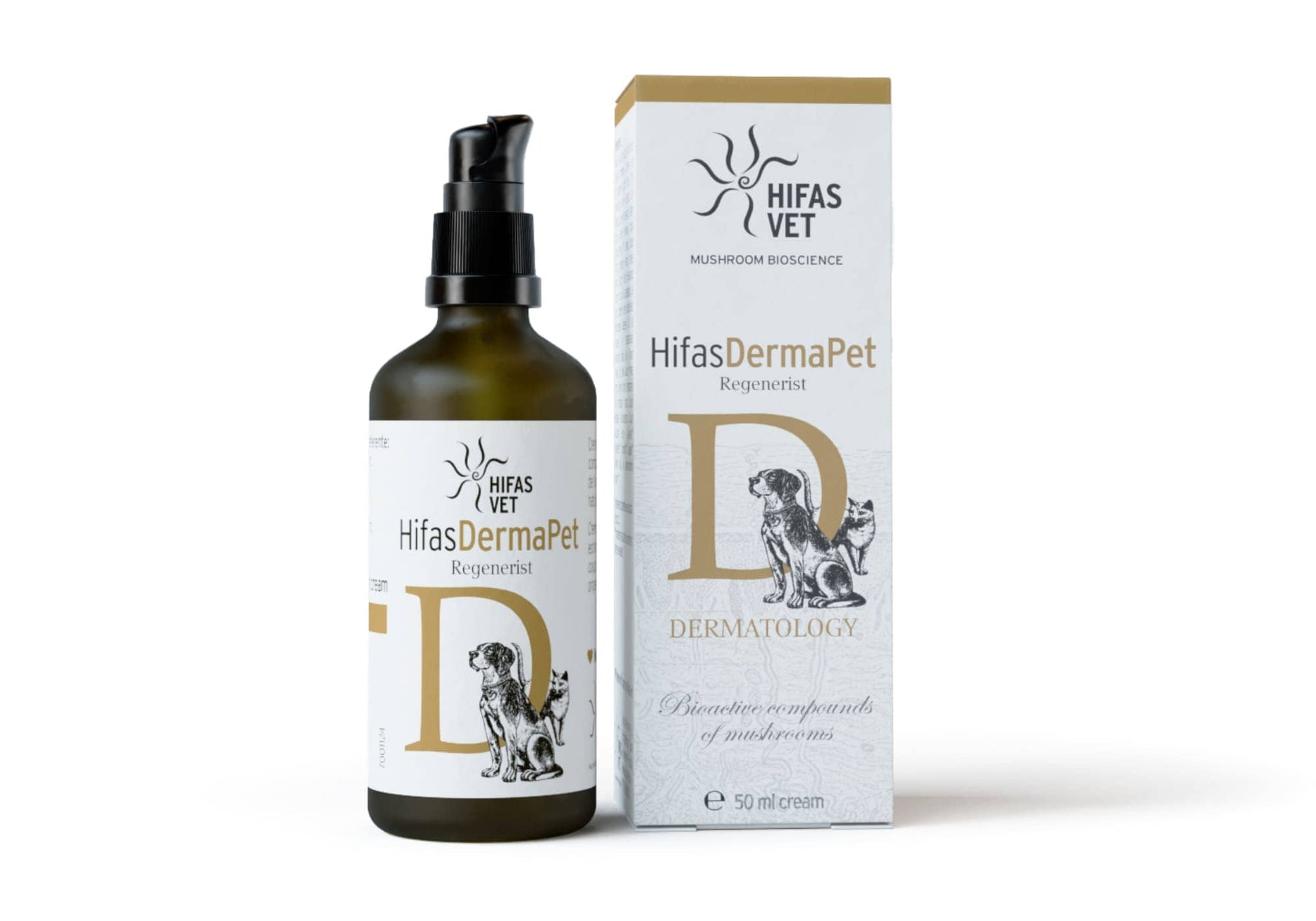 Hifas DERMA Creme regenerador para animais de estimação, para a pele de cães e gatos de todas as raças e idades, que regenera, hidrata e promove a proteção e o cuidado da pele.