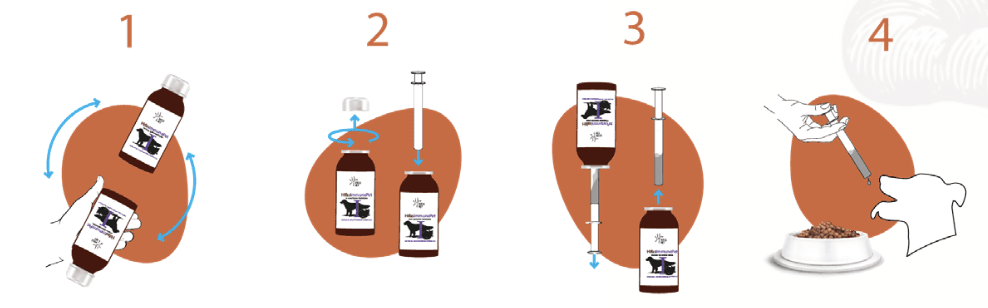 Administração oral numa dose única diária ou dividida em 2 doses de 0,5 ml por kg de peso do animal.