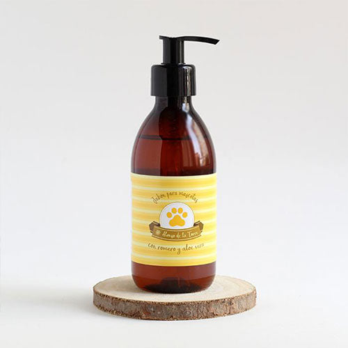 Sabonete natural artesanal para animais de estimação, com aloé vera e alecrim. Frasco PET de 250 ml com doseador.