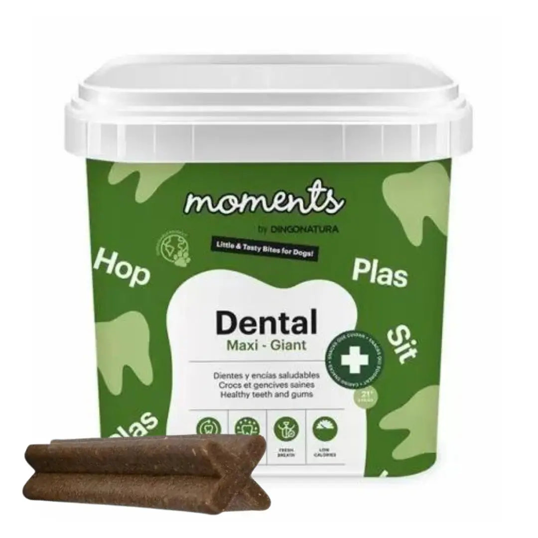 Os Moments Dental Sticks para Cães Maxi-Gigantes são um alimento complementar natural em forma de barra, ideal para cães de grande e grande porte. Especialmente formulados para promover a saúde oral do seu cão, estes snacks ajudam a reduzir o tártaro e a prevenir a placa bacteriana. A textura adaptada e duradoura dos Moments Dental Sticks atua como uma escova de dentes, ajudando a limpar os dentes e a massajar as gengivas.