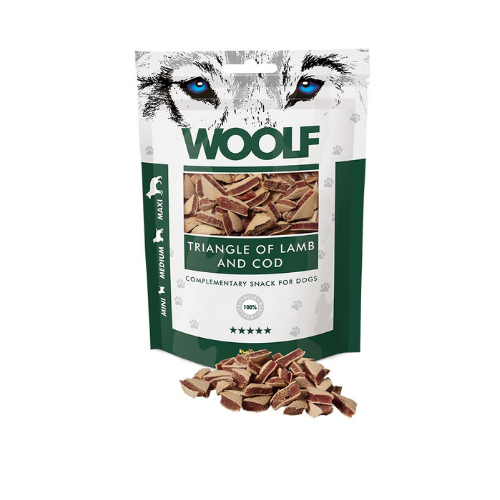 Triângulos de Cordeiro e Bacalhau Woolf - Snacks para Cães